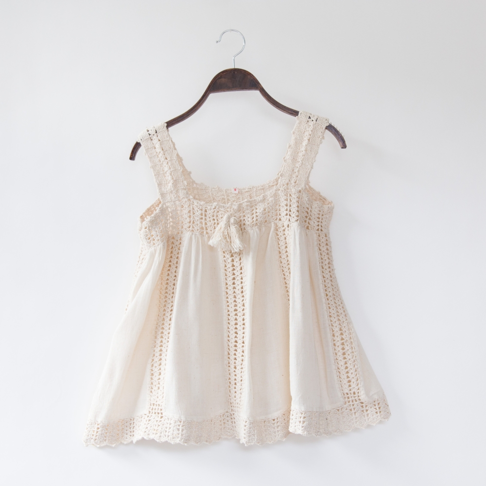 Completeaza-ti garderoba de vara cu acest top delicat, crem, realizat din material usor si decorat cu detalii crosetate. Croiala lejera si bretelele late asigura confort si un aer romantic. Poarta-l cu jeansi scurti, fuste lungi sau pantaloni din in pentru un look fresh si natural.